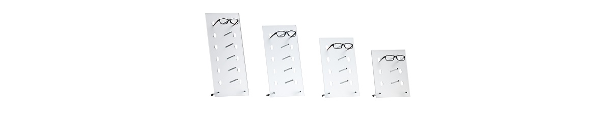 The bridge of your frames rest on anodized metal pegs and the temples are gently cradled in the openings on the face of the Ice Display. Turn them sideways to show off the temples or pick them up and bring them to the dispensing table to show patients their options. These sturdy displays will fill both the form and functional needs of your dispensary. If you love these, then you will want to see our ICE panels and ICE CUBE displays for Walls.
