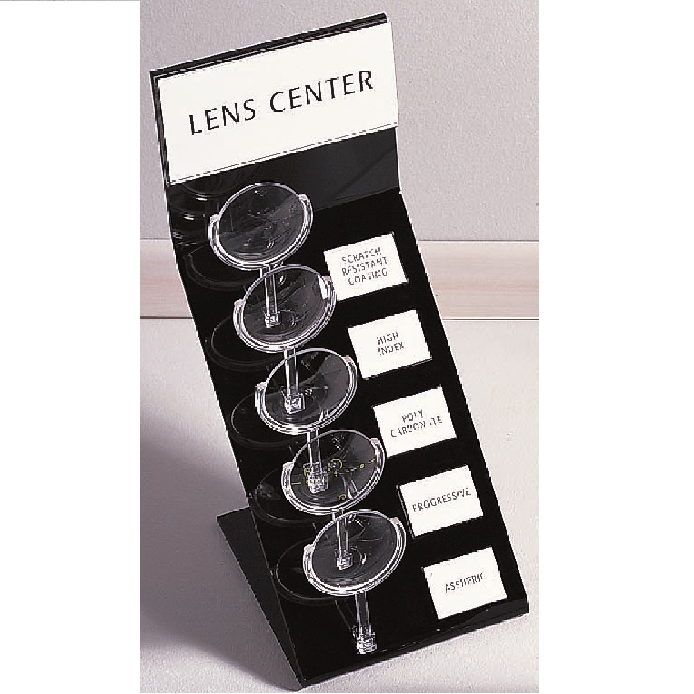Lens Center Display holds up to 5 lenses (edged to 55mm) per row (lenses not included).