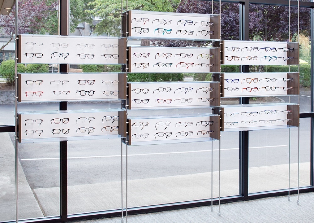 - The open front display creates easy access to frames for patients and staff