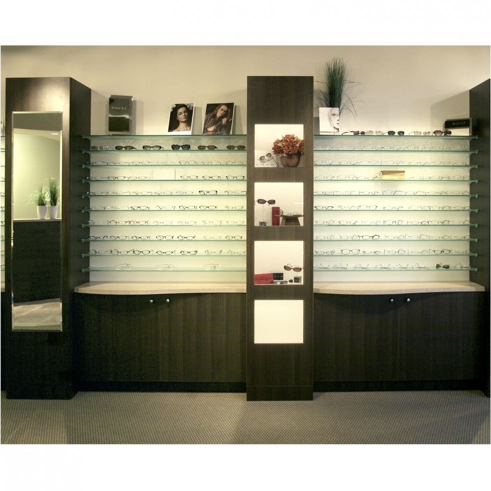 Tall display cabinet with singular door unit, complete with 4 glass window cut outs.