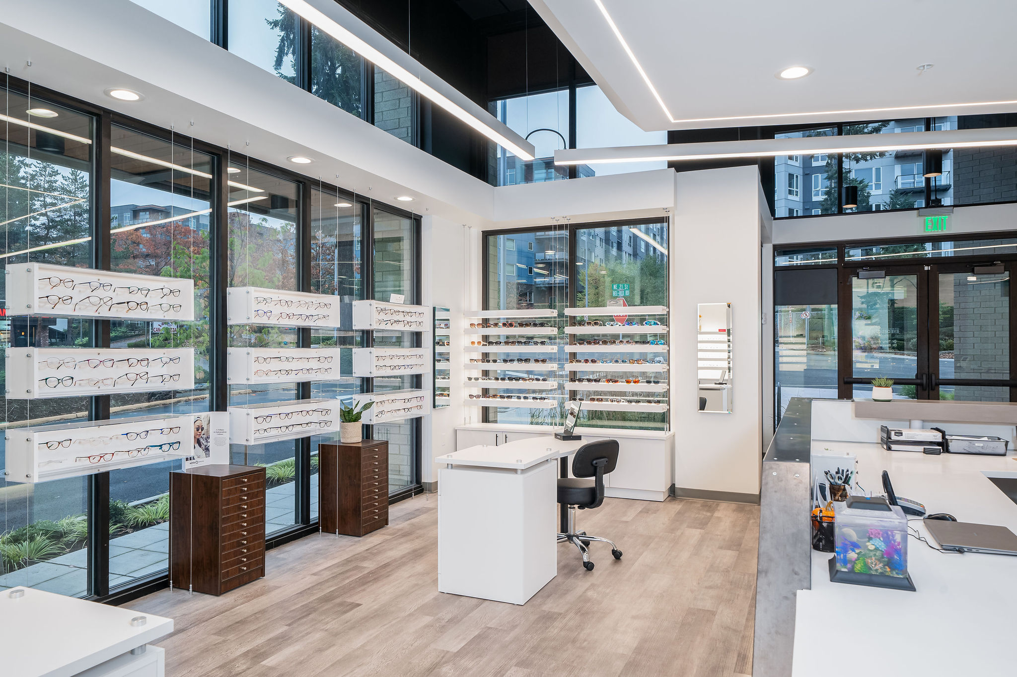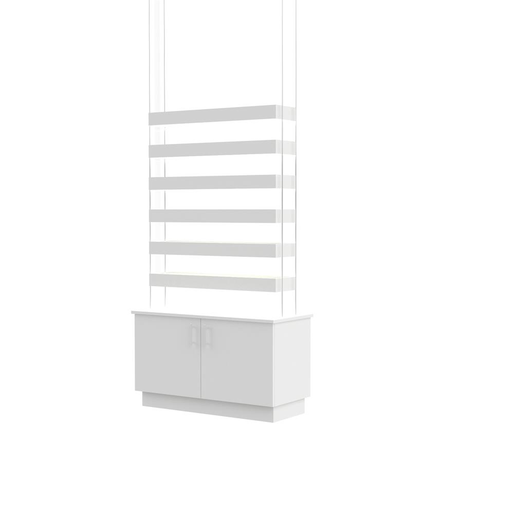 Illuminate your merchandise with this beautiful set of LED lit floating shelves paired with a fully finished 2 door base cabinet. The shelves are lit above and below to create a fluid lighting environment that reduces shadows and showcases your product in the best light.