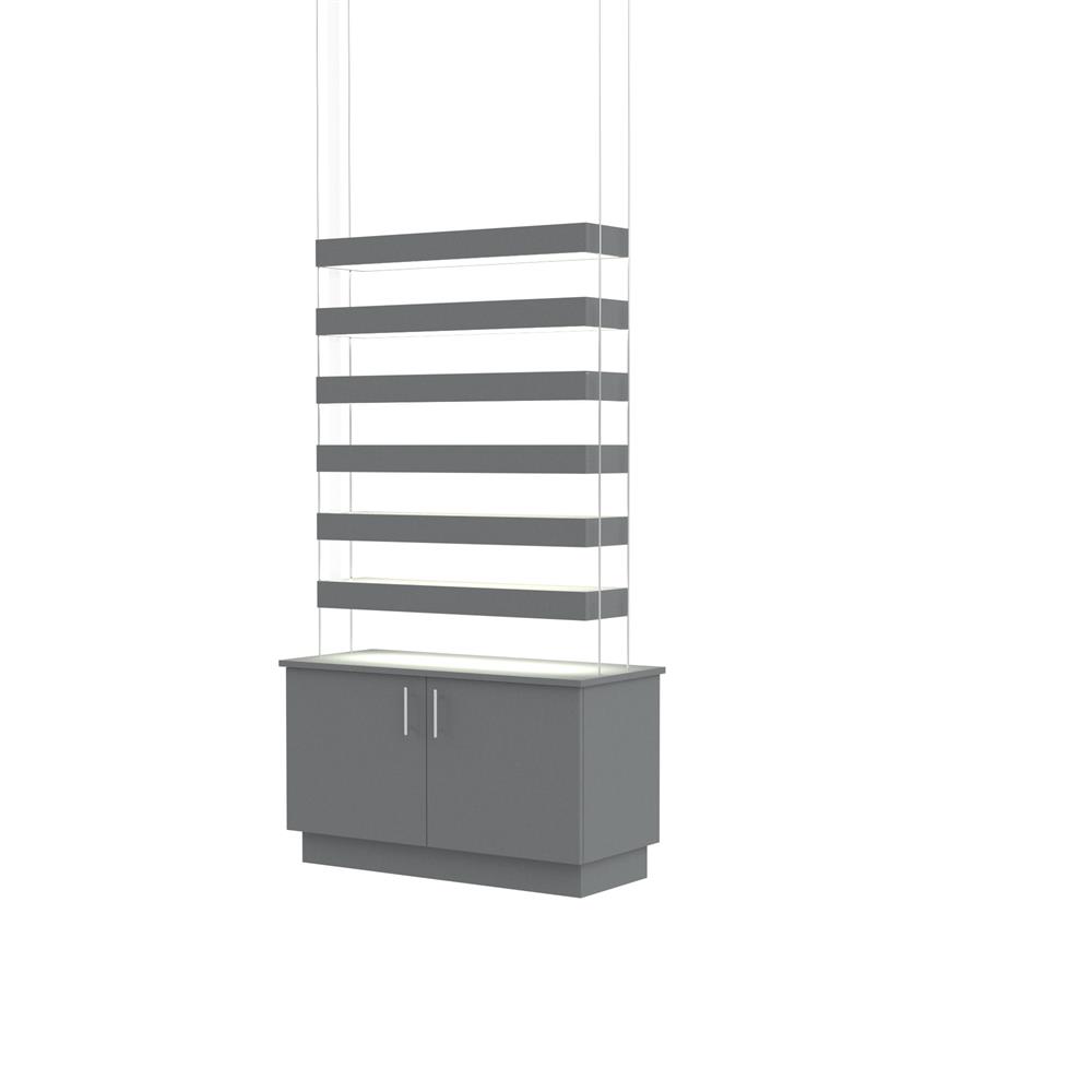 Choose from 4-8 shelves that are suspended on electrified cables.