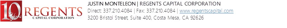 *Additional information may be requested by Regents Capital to obtain final credit approval and evidence or protection of Regents Capital’s interest in the equipment. Approval amount and approval stipulations are subject to final credit review and underwriting.
