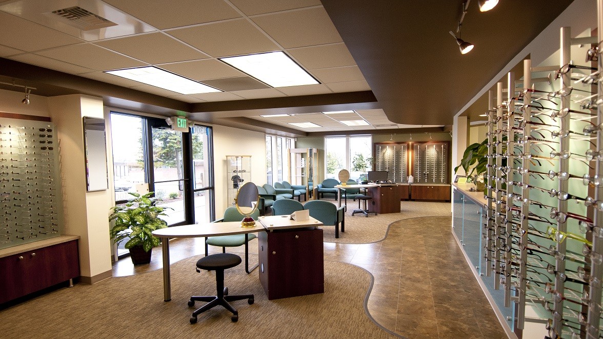 Cascade Vision Center is located near Valley General Hospital in Renton, WA. Dr. Sifrit had purchased a practice but a lease expiration required him to move the practice. He located a new “possible space” and contacted Ennco for assessing the feasibility of this project. The initial space chosen created numerous challenges for the layout due to an obscured entry and limitations the landlord placed on breaking up the space. Although solutions for the flow and design were found, Dr. Sifrit ultimately decided to find another space close by. The new space allowed much more flexibility in layout, the ability to take exactly the amount of space needed to fulfill all the practice room requirements and ample parking. Reorienting the entry was likely the single biggest challenge, but SR Company was able to do that without much fanfare. The overall flow of the office is circular in nature with two branches that lead to exam rooms and a small waiting room outside a procedures area. The space flows nicely and will accommodate growth for the practice well into the future.