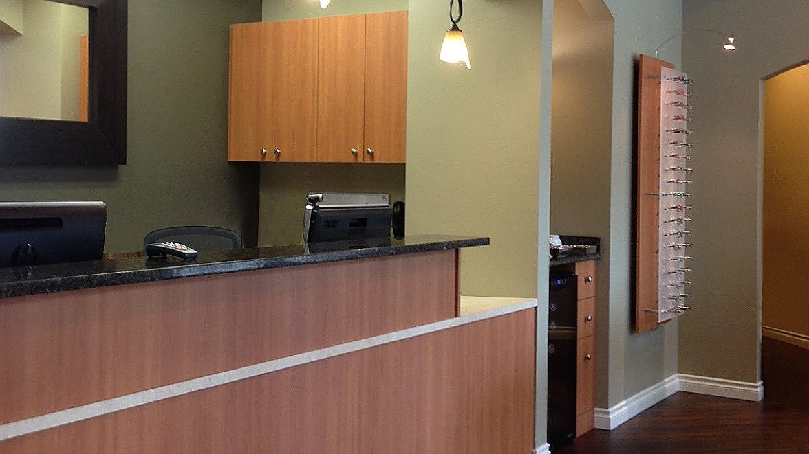 Dr. Mary Jane Healey O.D. began her practice design through our Magic Design process with Cy Furman. The unique shape of the space, the vaulted ceilings, and window placements made it quickly apparent that onsite measuring and verifications were going to be required. Dr. Healey worked with our team and SR Company to alter the original design intent to accommodate both the current needs and coordinate a plan for future growth in the event that the next door tenant should move.