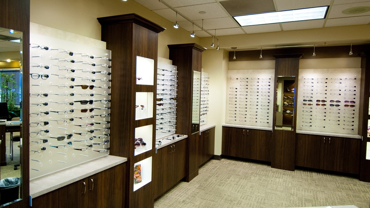 I Care Optical, the office of Dr. Lewis Lim is located in Kent, WA. Dr. Lim had purchased a practice that had been outfitted by Ennco Display in the 80’s and knew he was eventually going to upgrade and remodel. Years of discussion and planning took place before the project was finally undertaken. A number of suppliers were considered, but ultimately Ennco was chosen to work on initial concepts as well as final construction. Like many new remodels, this space was challenged by the new lighting allowances for energy consumption. The team at Office Wraps worked with Dr. Lim to pick out new lighting that would satisfy both the energy requirements and the need for “uber cool” lighting for merchandising. The display area was reduced from its previous size, but now the space is much more “browsing friendly” and the use of the space is much more efficient. The new space created by reducing the dispensary flows nicely and will accommodate growth for the practice well into the future.