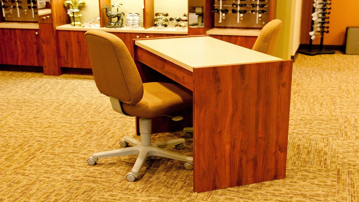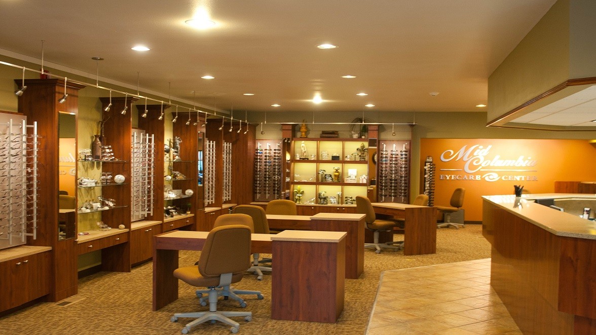 Mid Columbia Eyecare is located in Pasco, WA and is the office of Drs. Anderson, Michael and Perdue. Over the years the office had been remodeled, but not for a complete facelift. As with many offices, the wood trim, colors and lighting were starting to tell the story of how long it had been between upfits. Ennco Display was asked to propose a new look with colors, lighting and flooring all while working to a somewhat defined budget. One major challenge was to retrofit as much of the existing reception counter as possible (in place) and replace the transaction top with a solid surface material. In multi-doctor practices, the selection of style and color can be challenging but the color rendering capabilities we offered allowed all the participants to reach agreement on style and color. Their patients have made great comments about the space and we think you will too.