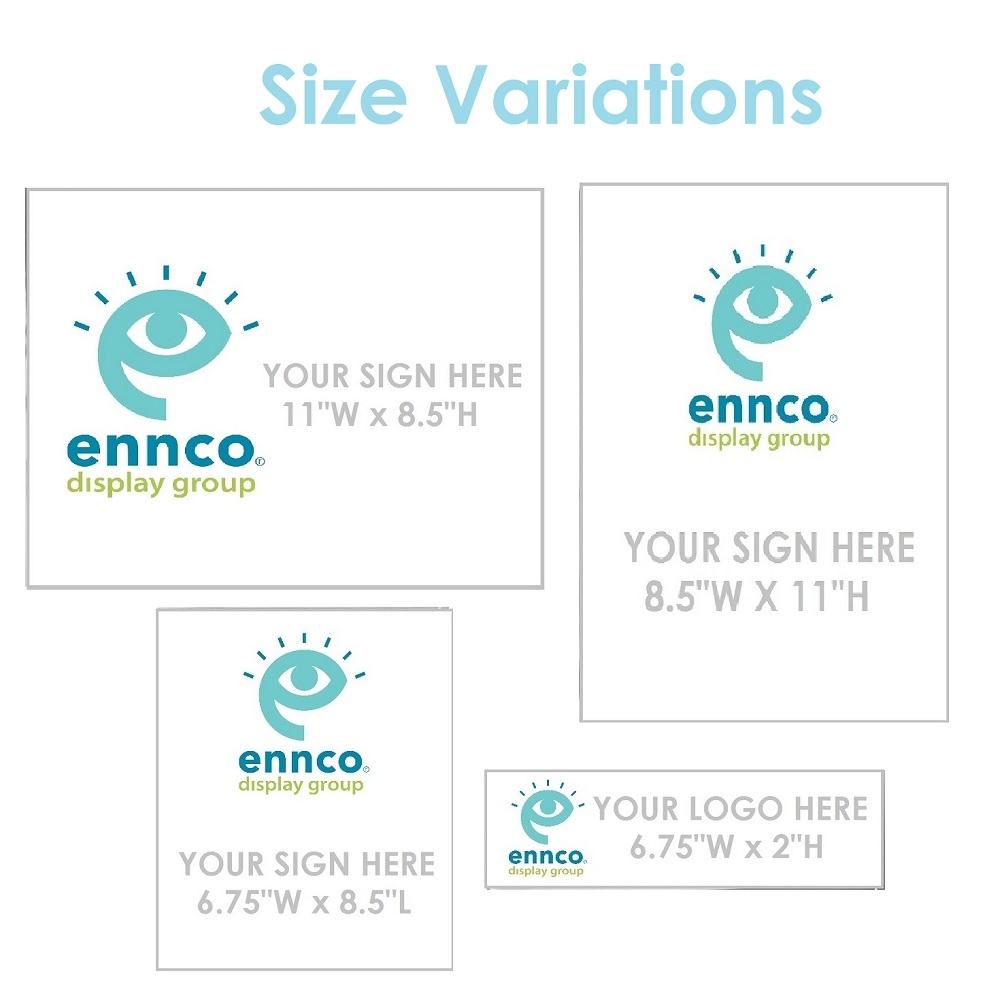 • Small/Logo Holder: 6.75"W X 2"L (covers 1 frame space)