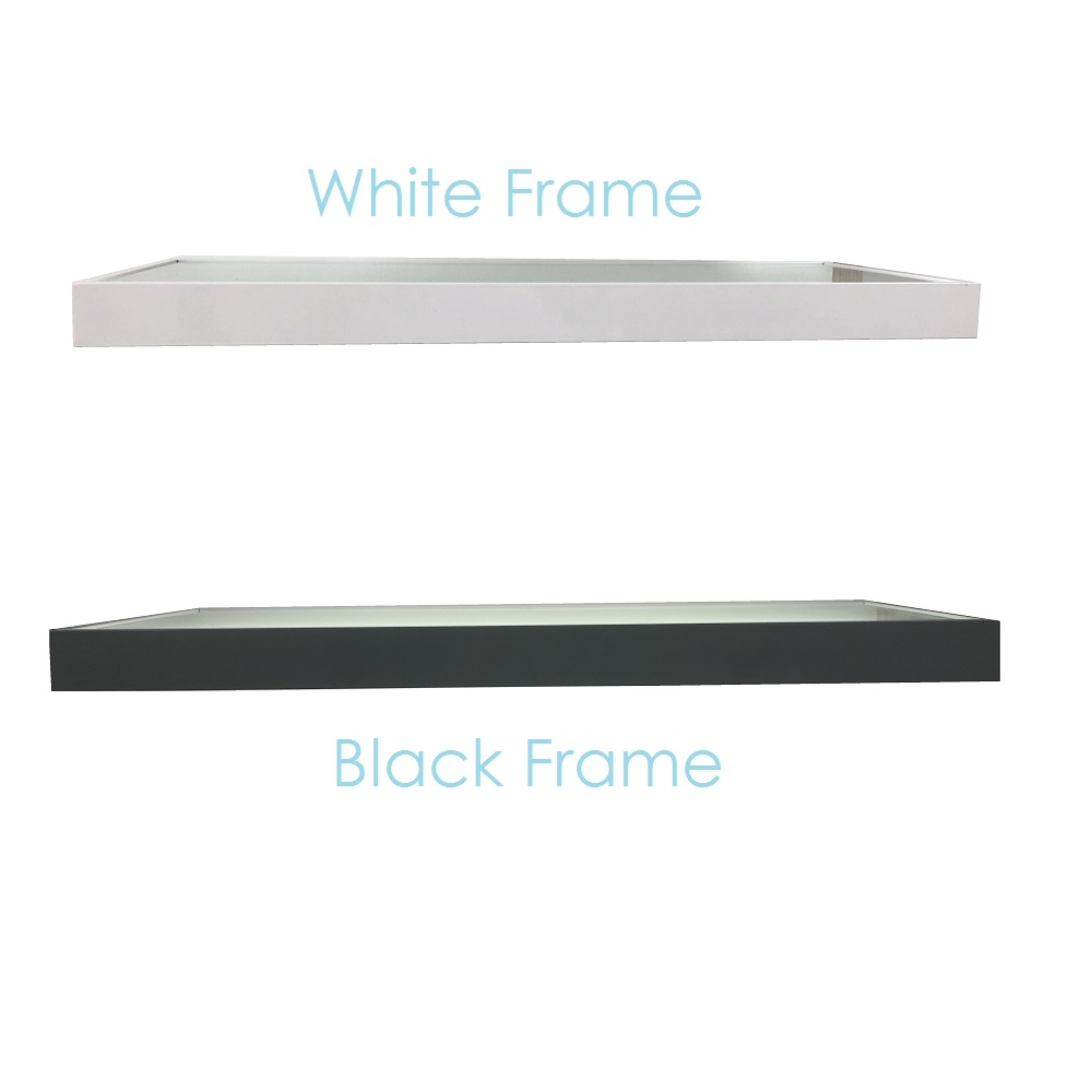 The shelves have a metal frame with glass top and bottom, you can choose to do a black or white frame and we can even apply custom color laminate to the edges to match your existing casework! If you select custom edging we will reach out to you once the order is placed to pick the color.